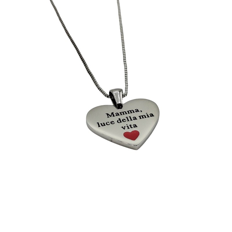 Collana in acciaio 316 l con frase MAMMA LUCE DELLA MIA VITA . L'articolo verrà spedito in confezione originale IL GIOIELLO DI PANI.