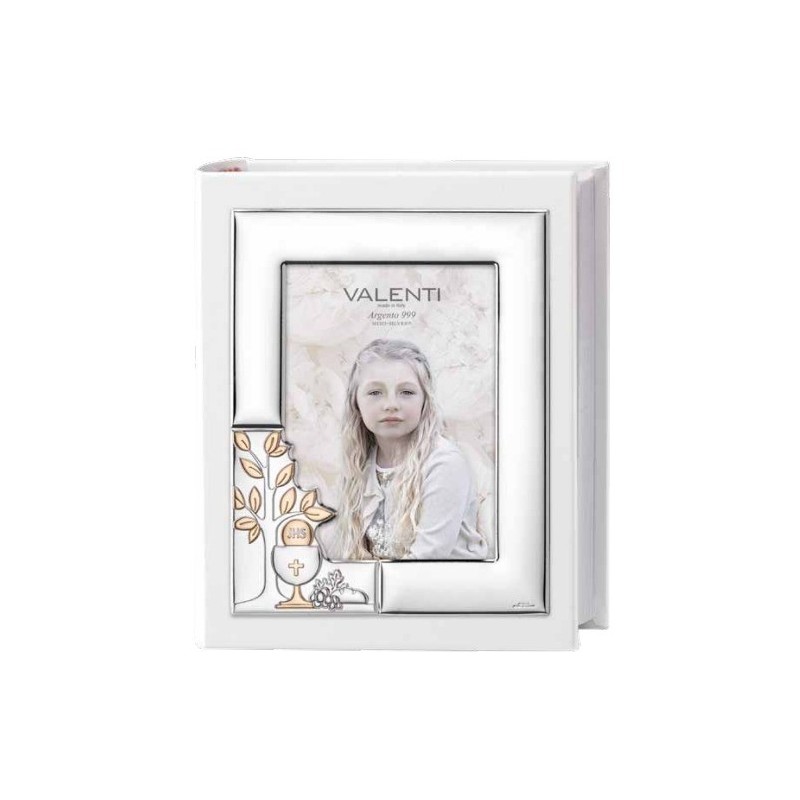 Album Comunione con placca simbolo Comunione Albero della Vita e cornice. Dimensione foto cornice: 13x18. L'articolo verrà spedito in confezione originale VALENTI.