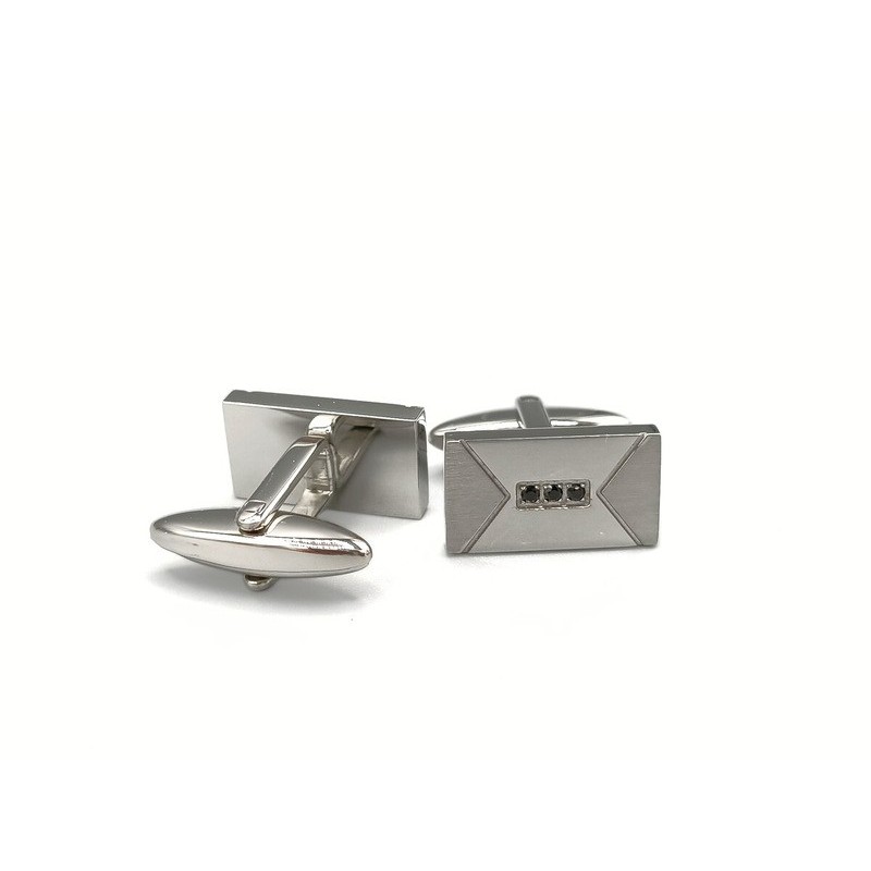 Gemelli uomo in acciaio 316l dalla forma rettangolare con zirconi neri nella parte centrale . Triangoli laterali in acciaio satinato. L'articolo verrà spedito in confezione originale IL GIOIELLO DI PANI.