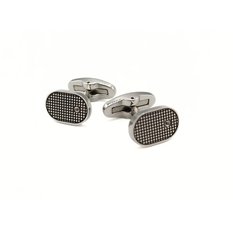 Gemelli uomo in acciaio 316l brunito con piastra puntellata. L'articolo verrà spedito in confezione originale IL GIOIELLO DI PANI.