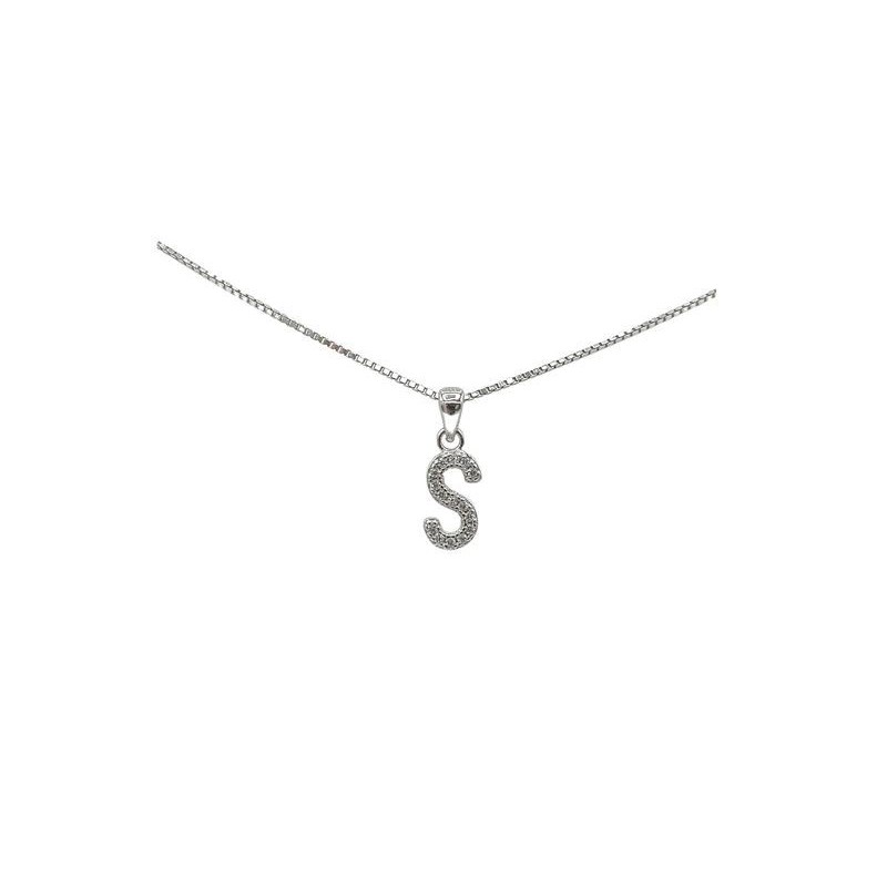 Pendente con iniziale S in argento rodiato 925/°°° zirconi bianchi naturali e veneziana in argento da 45 cm. L'articolo verrà spedito in confezione originale IL GIOIELLO DI PANI.
