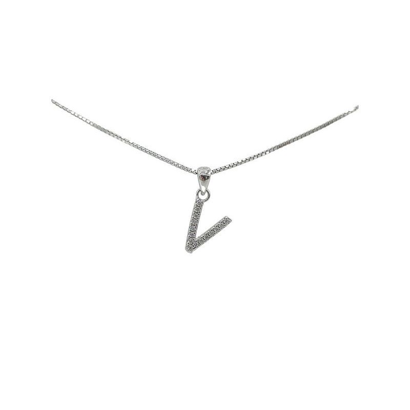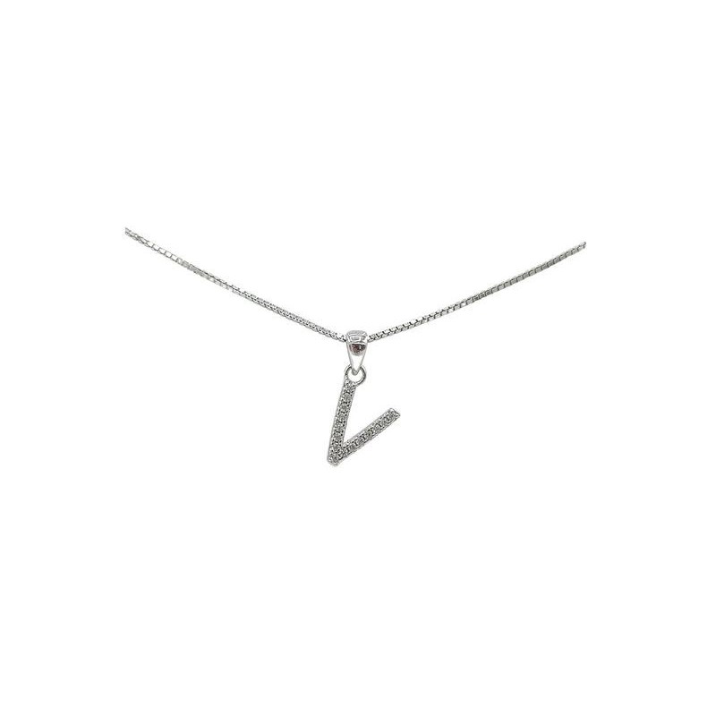 Pendente con iniziale V in argento rodiato 925/°°° zirconi bianchi naturali e veneziana in argento da 45 cm