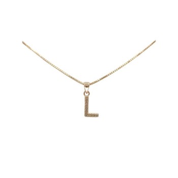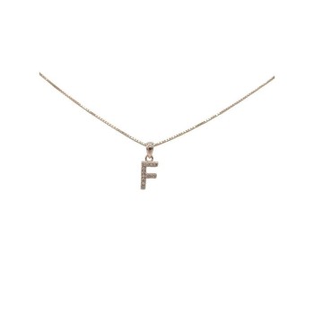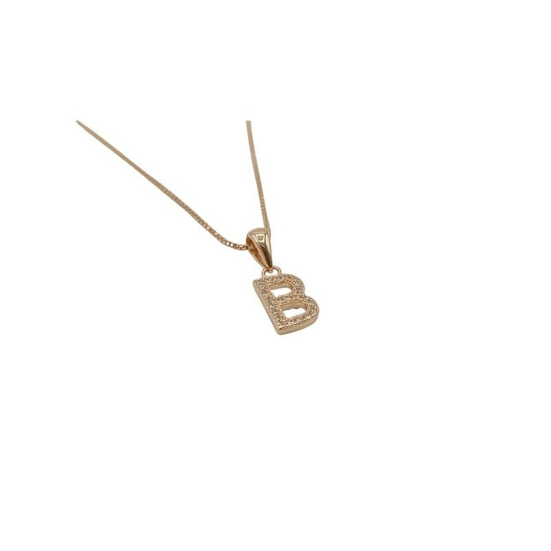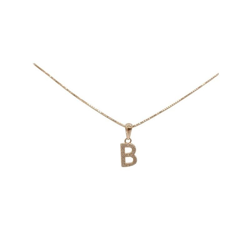 Pendente con iniziale B in argento rosato 925/°°° zirconi bianchi naturali e veneziana in argento rosato da 45 cm