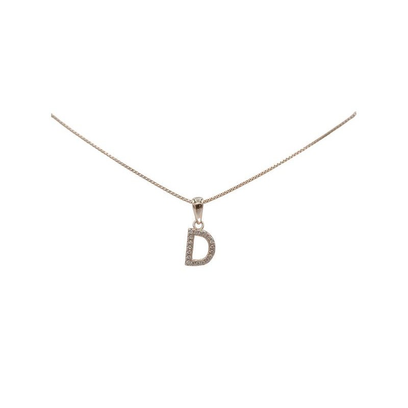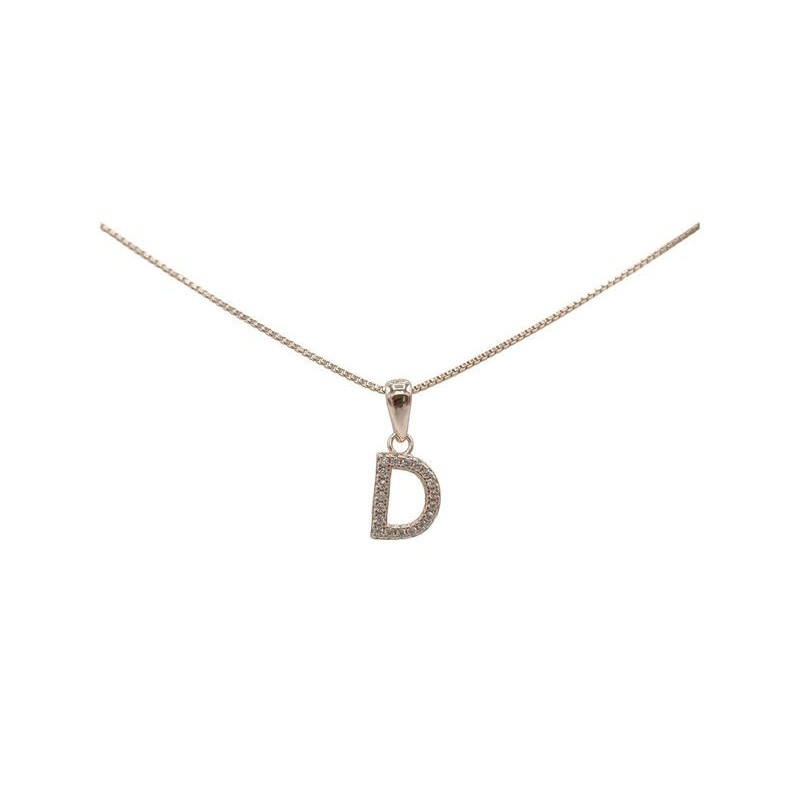 Pendente con iniziale D in argento rosato 925/°°° zirconi bianchi naturali e veneziana in argento rosato da 45 cm