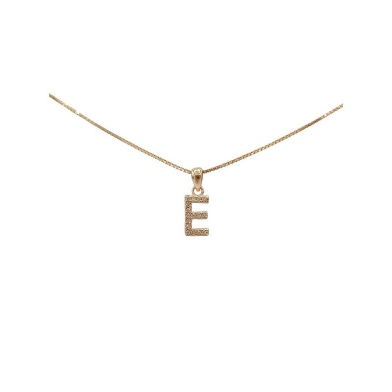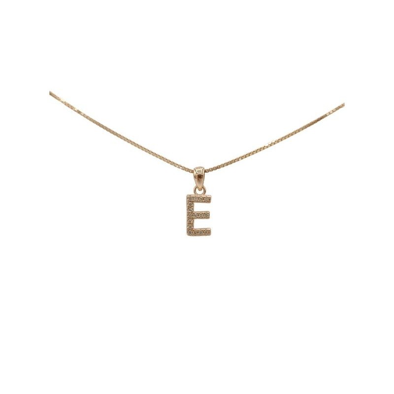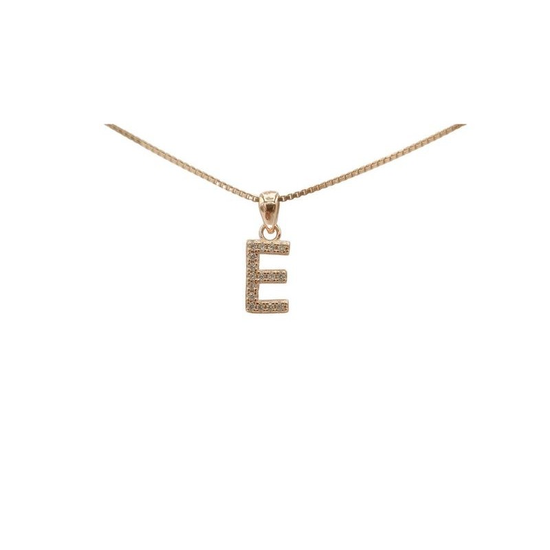 Pendente con iniziale E in argento rosato 925/°°° zirconi bianchi naturali e veneziana in argento rosato da 45 cm