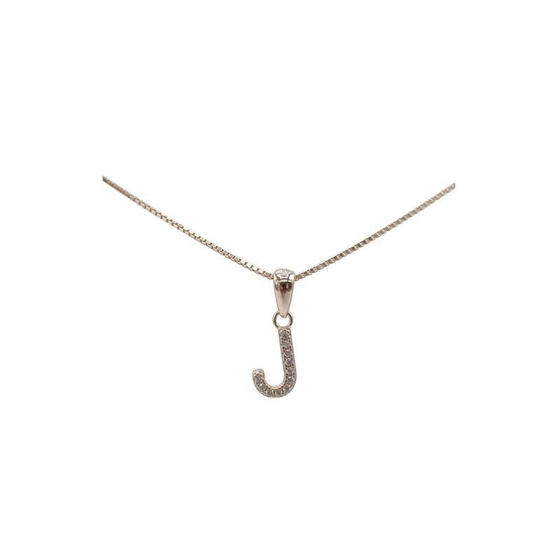Pendente con iniziale J in argento rosato 925/°°° zirconi bianchi naturali e veneziana in argento da 45 cm