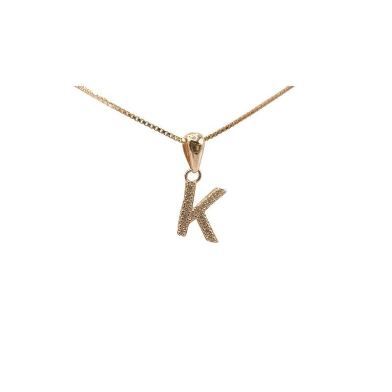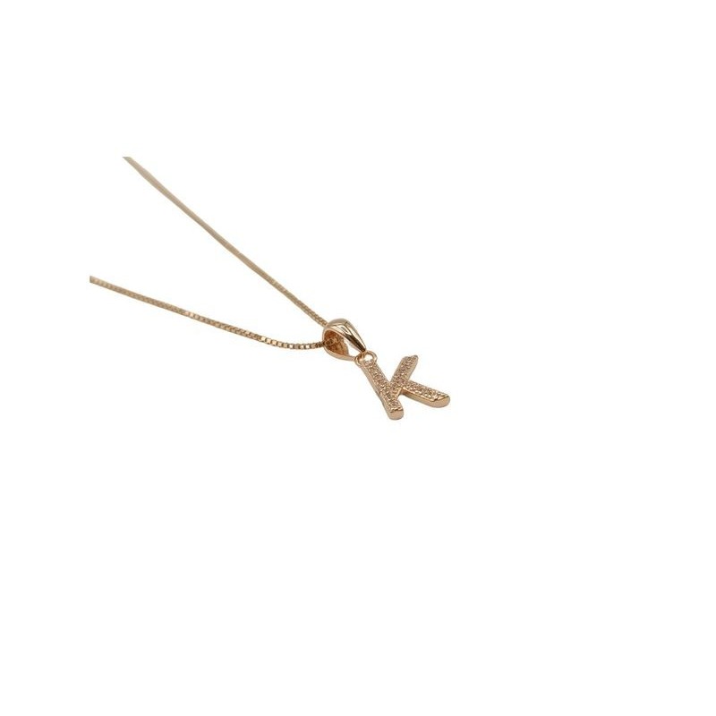 Pendente con iniziale K in argento rosato 925/°°° zirconi bianchi naturali e veneziana in argento rosato da 45 cm .