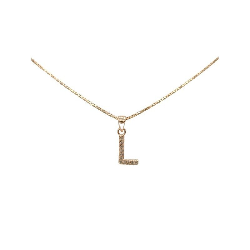 Pendente con iniziale L in argento rosato 925/°°° zirconi bianchi naturali e veneziana in argento rosato da 45 cm