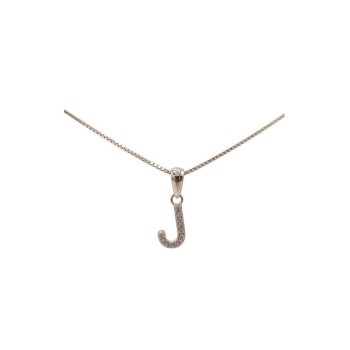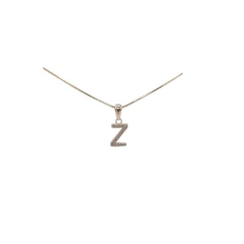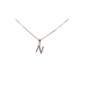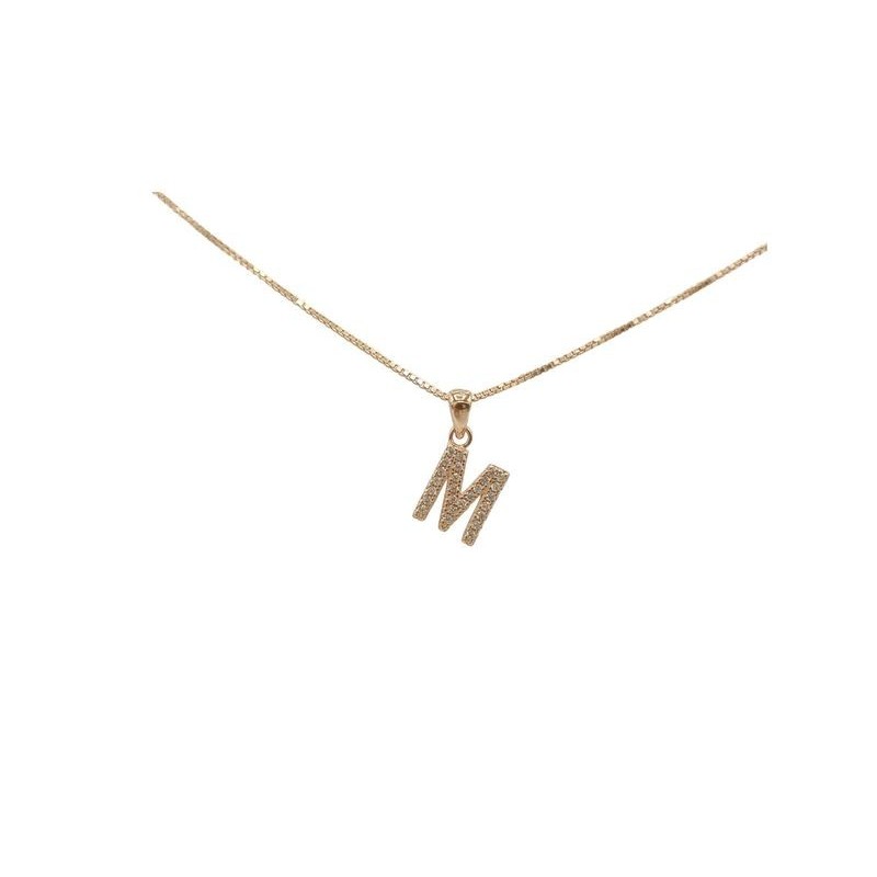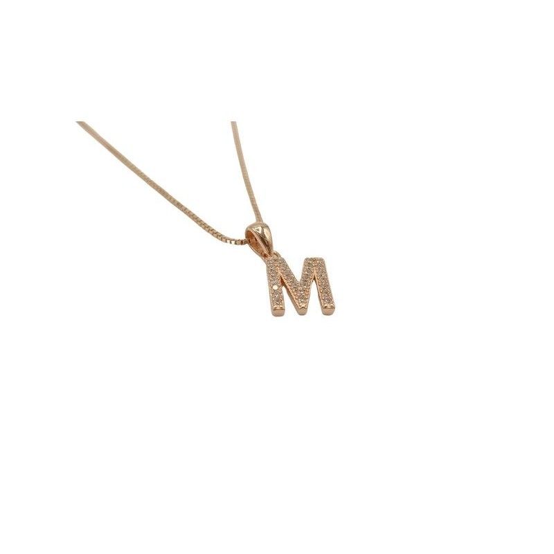 Pendente con iniziale M in argento rosato 925/°°° zirconi bianchi naturali e veneziana in argento rosato da 45 cm .