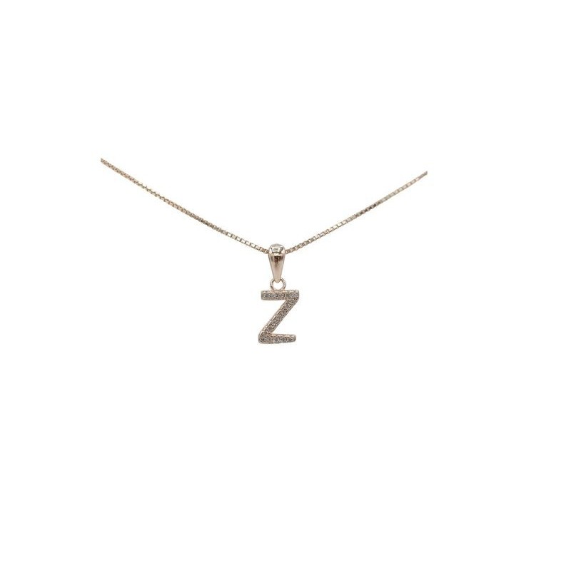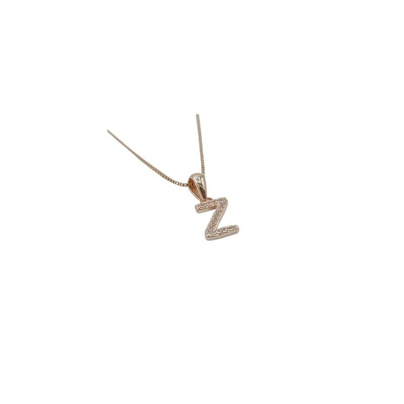 Pendente con iniziale Z in argento rosato 925/°°° zirconi bianchi naturali e veneziana in argento rosato da 45 cm