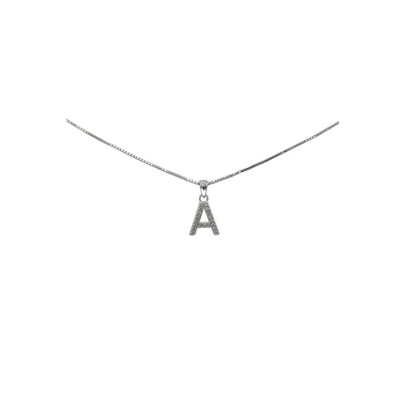 Pendente con iniziale A in argento rodiato 925/°°° zirconi bianchi naturali e veneziana in argento da 45 cm