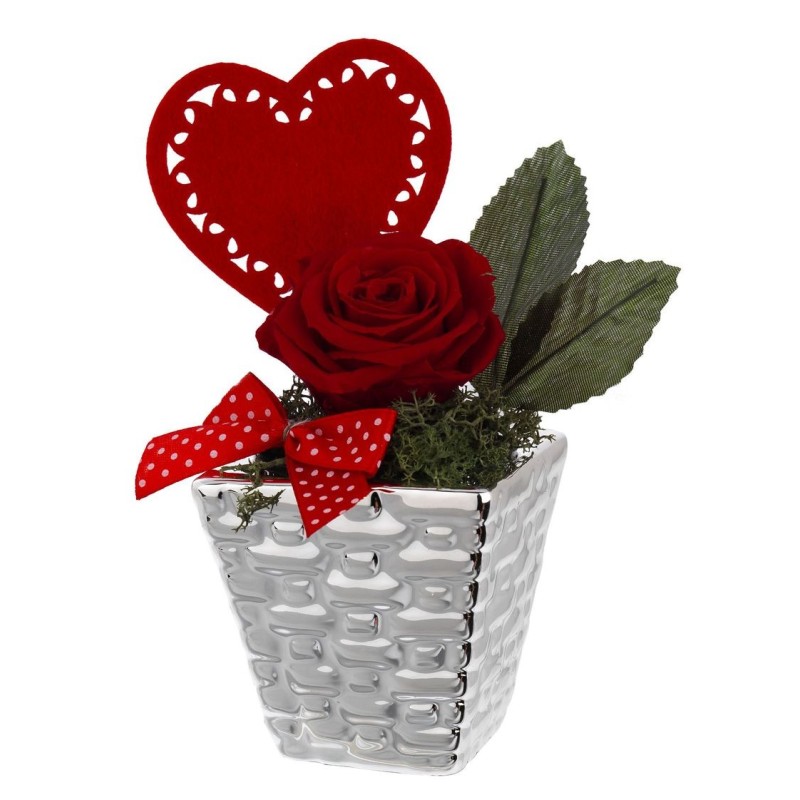 portavaso di bagutta in porcellana con rosa rossa stabilizzata della misura di cm 7x7x7. l'articolo è dotato dell’apposito astuccio personalizzato.