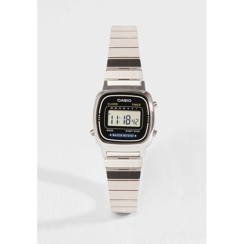 l'orologio casio la670wa-1df è tra i più intramontabili orologi casio vintage della collezione mini . movimento : quarzo funzioni principali : allarme giornaliero, calendario automatico, cronometro - 1/10 sec - 1 ora, 7 preset timer fino a 30 minuti .cassa: 30,3 mm x 24,6 mm x 7,3 mm (a x l x p)questo modello è impermeabile a norma din 8310 e/o iso 22810, sopporta quindi spruzzi leggeri. evitare un contatto con una quantità maggiore di acqua.cinturino in acciaio inoxcassa in resina quadrante con vetro acrilico di colore nero tutti i nostri articoli sono dotati di certificato di garanzia.questo orologio verrà spedito con scatola originale casio.il classico orologio casio digitale della collezione mini è caratterizzato da una semplicità unica ma ciò nonostante rende ogni outfit decisamente alla moda. grazie alle sue multifunzioni è un prodotto da utilizzare in tutte le occasioni , dalle circostanze più sportive a quelle più eleganti e raffinate.tutti i modelli casio inoltre hanno il cinturino regolabile in base alle proprie esigenze ,il che lo rende ancora più versatile e vi agevolerà nella scelta del modello !