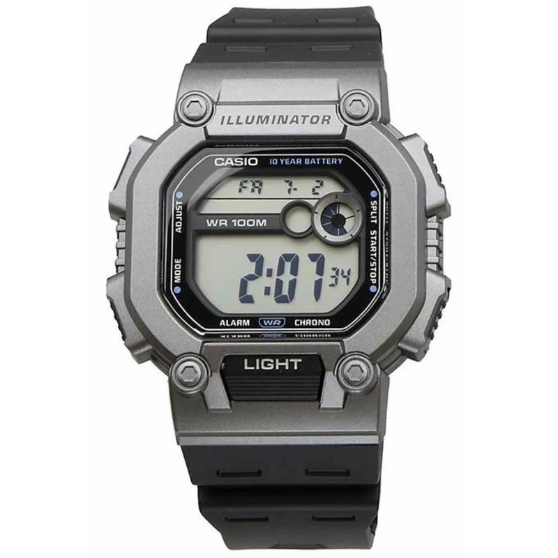 Orologio casio unisex in gomma. Le funzioni principali sono: allarme giornaliero, calendario e cronometro. La cassa e il cinturino sono realizzati in gomma. Resistenza all'acqua di 10 atm.Questo orologio verrà spedito con scatola originale Casio.