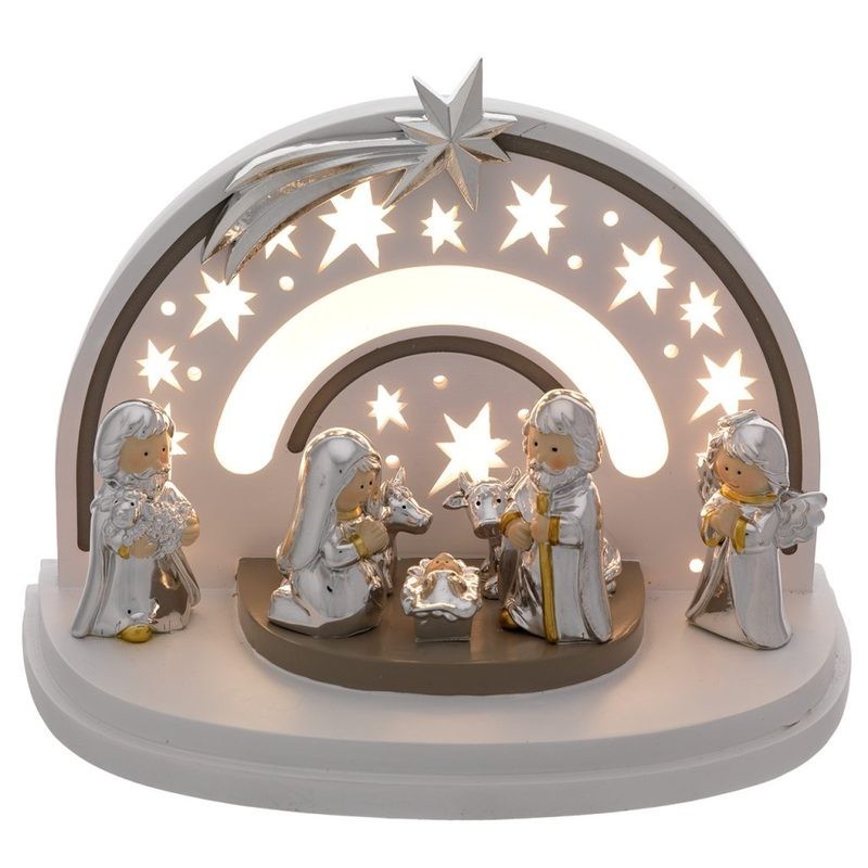 Capanna dimensioni 14x24x16 con parete led + presepe europeo 7pz. L'articolo verrà spedito in confezione originale BAGUTTA.