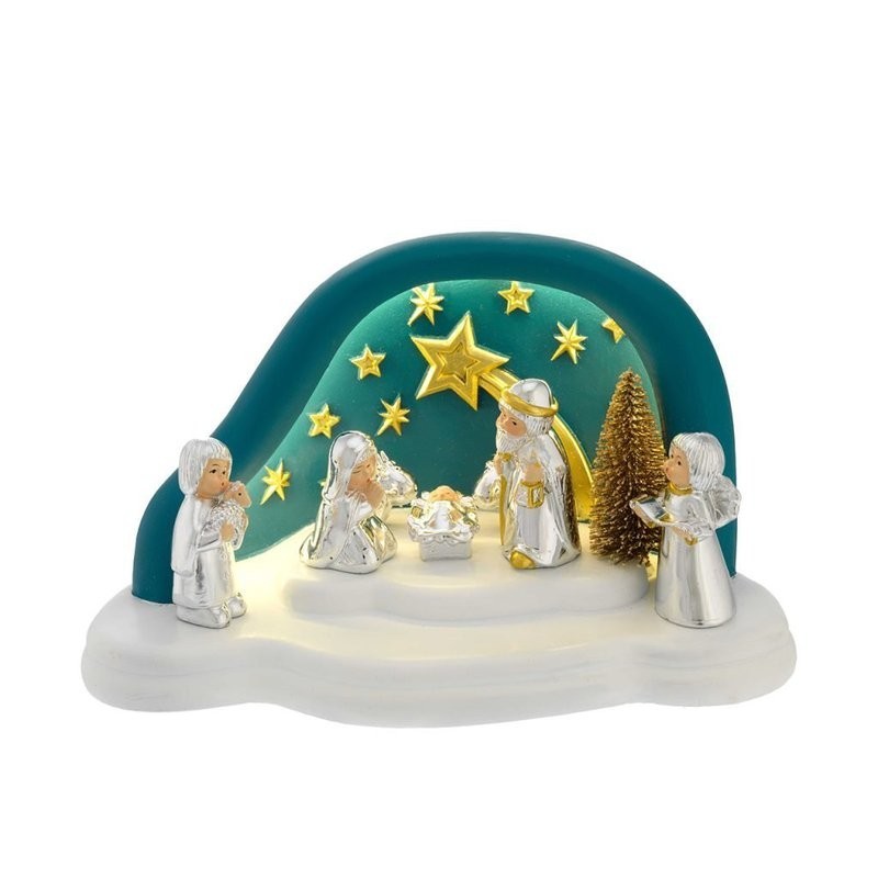 Capanna con led nuvola piccola colore ottanio + presepe provenzale 7pz. L'articolo verrà spedito in confezione originale BAGUTTA.