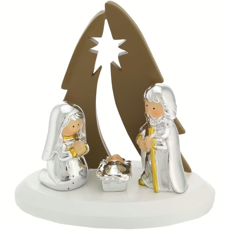 Presepe in resina argentata con illuminazione led. Dimensioni 13x8 cm. Altezza 14 cm. Colore marrone. L'articolo verrà spedito in confezione originale BAGUTTA.
