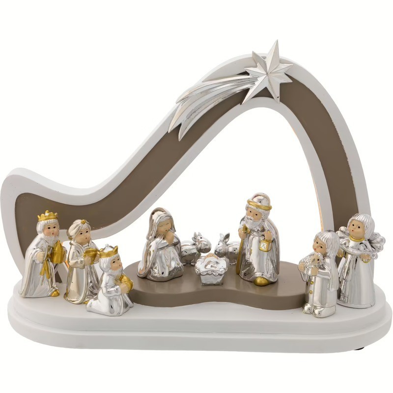 Capanna 12x27x21 bicolore con led + presepe provenzale 10 pzi. L'articolo verrà spedito in confezione originale BAGUTTA.