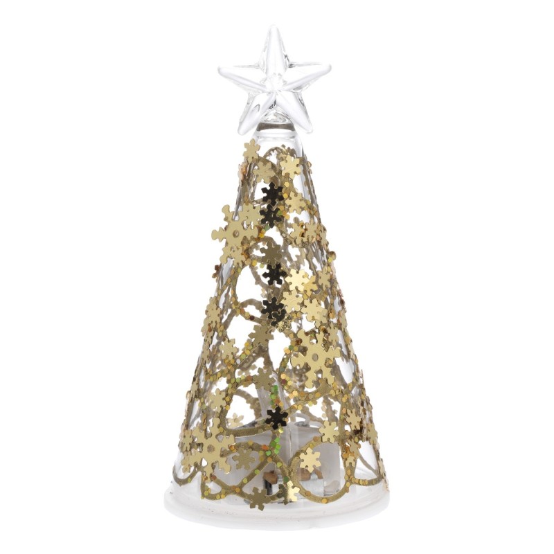 Oggetto decorativo con raffigurato un albero in vetro di altezza: 9,5 cm C/Led Oro. L'articolo verrà spedito con scatola originale Bagutta.