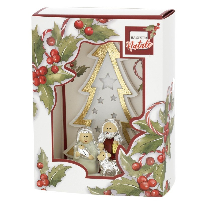 Albero di stelle stilizzato con presepe in resina argentata smaltata colore bianco e argento, Bagutta. Altezza 12,5 cm.Questo articolo verrà spedito con scatola originale Bagutta.