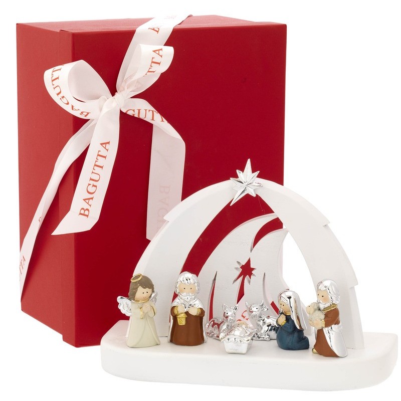 Presepe capanna bianca e stella in resina argentata e smaltata colore bianco e argento, Bagutta. Diametro 27x20 cm.Questo articolo verrà spedito con scatola originale Bagutta.
