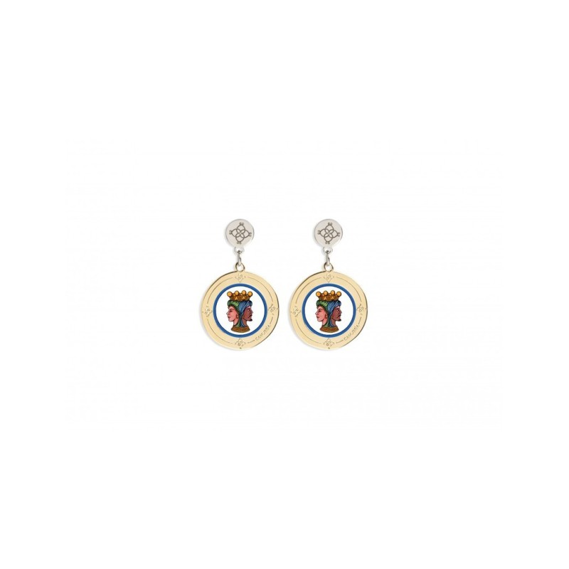 Orecchini donna Camurrìa in acciaio 316L e ottone rosato con stampa decorata, collezione A Tradizione, misura 3,5x2,1cm.Questo articolo verrà spedito con scatola originale CAMURRIA.