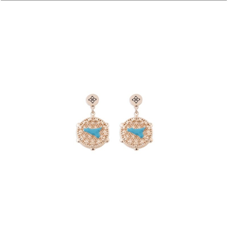 Orecchini pendenti donna Camurrìa forma tamburello siciliano in ottone rosato con sicilia smaltata, collezione A Tradizione, lunghezza 3,7cm.Questo articolo verrà spedito con scatola originale CAMURRIA.