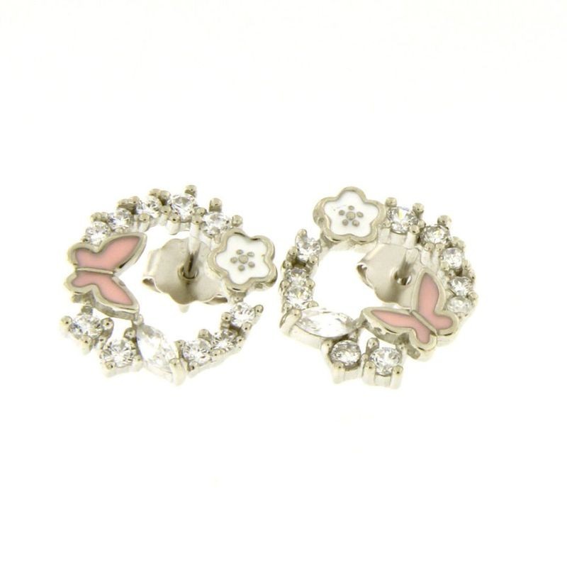 Orecchini fiore e farfalla in argento e zirconi bianchi, ideali per apparire semplici, ma brillare. Questo articolo fa parte della collezione Spunti di Luce della linea X LEI, verrà spedito con il suo particolare astuccio.