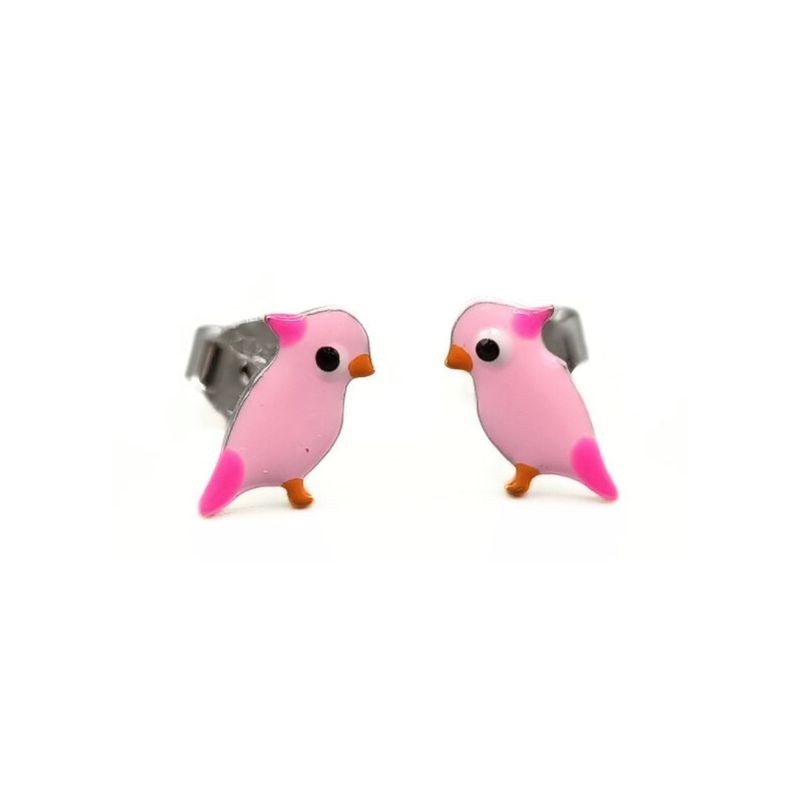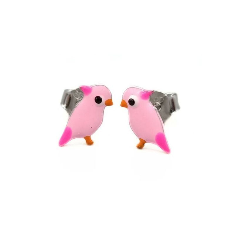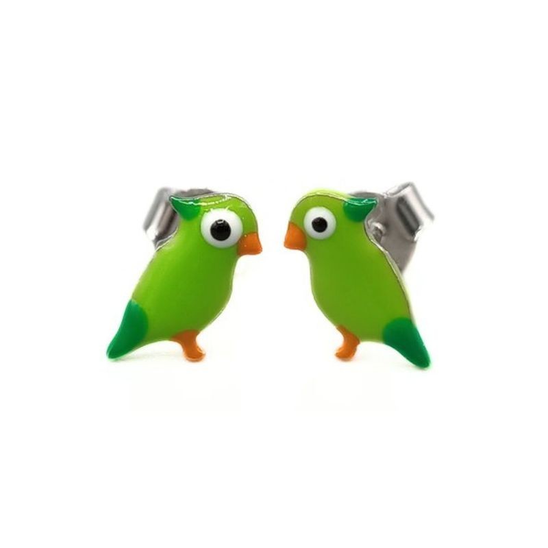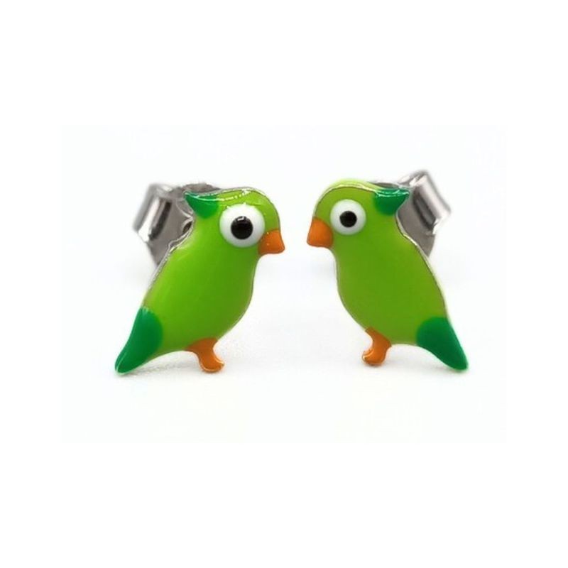 orecchini bimba in argento 925% con pappagallo smaltato . diverse varianti di colore . chiusura a bottoncino .