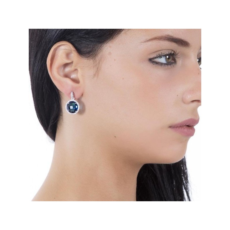 Orecchini da donna di Boccadamo della linea mediterranea della collezione sharada. Orecchini in bronzo rodiato con pendente in cristallo montana su base di zirconi con un diametro di cm 1,5, la lunghezza è di cm Questo orecchini verrà spedito con Scatola Originale Boccadamo.
