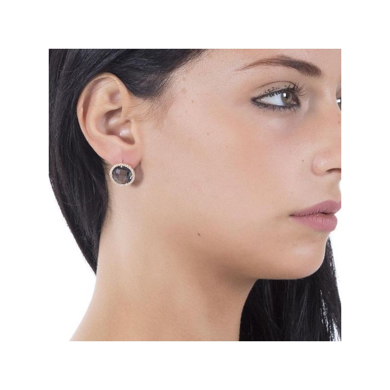 Orecchini da donna di Boccadamo della linea mediterranea della collezione sharada. Orecchini a lobo in bronzo placcato oro giallo con cristalli briolette smoky quartz e zirconi. Diametro cm 1,5.Questo orecchini verrà spedito con Scatola Originale Boccadamo.