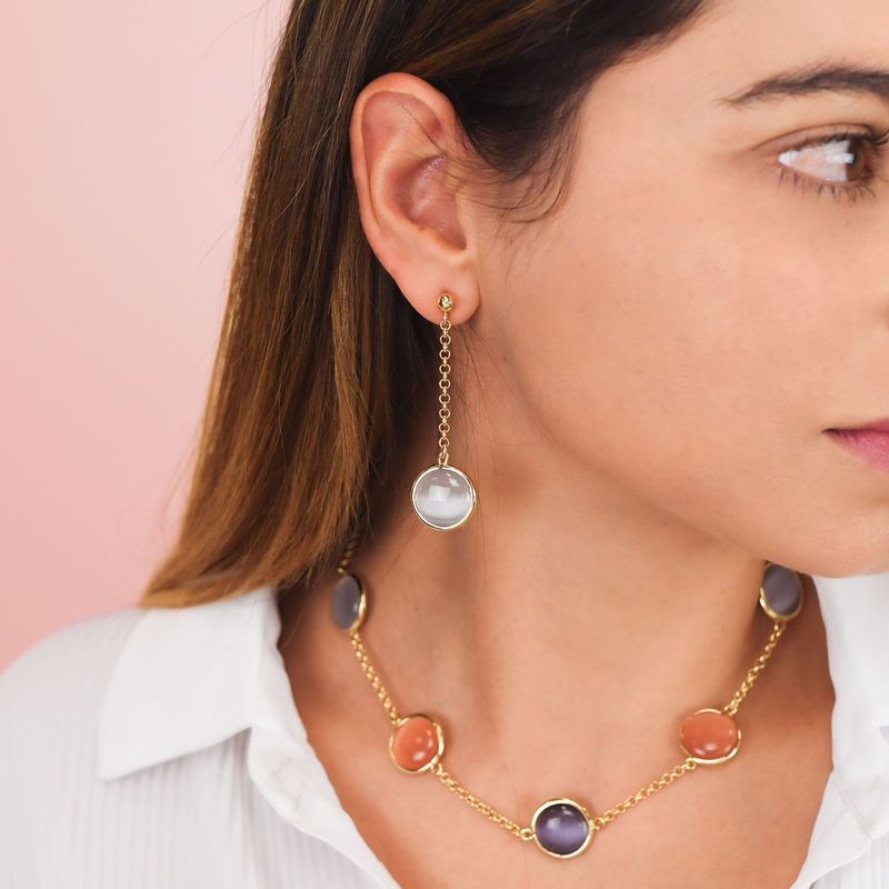 Orecchini placcati oro giallo con cristalli effetto cabochon di colore grigio pendenti. L'articolo verrà spedito in confezione originale BOCCADAMO.