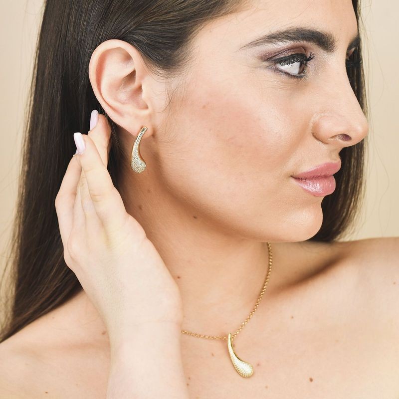 Orecchini a lobo placcato oro gliallo con pavè di zirconi a forma di goccia. L'articolo verrà spedito in confezione originale BOCCADAMO.
