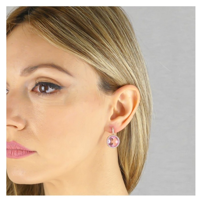 Orecchini da donna di Boccadamo della collezione Sharada della linea mediterranea. Orecchini in bronzo placcato oro rosa con cristallo color rosa pendente decorato da zirconi. L'articolo verrà spedito in confezione originale BOCCADAMO.