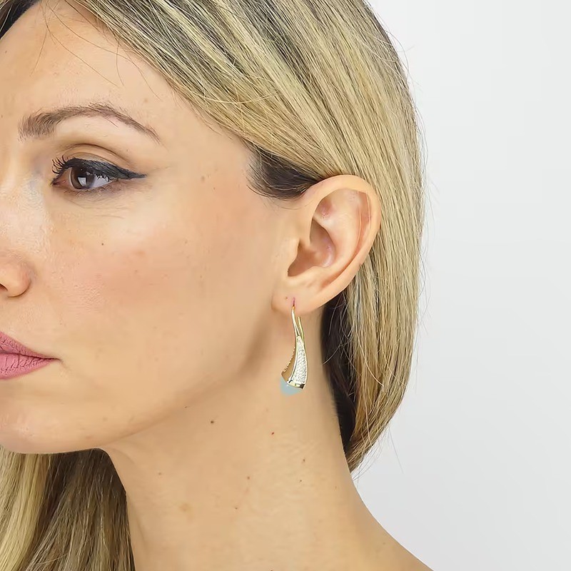 Orecchini doppio indosso placcati oro rosa con pendenti a goccia e cristallo piramidale color acqua milk e pavè di zirconi. Pendenti indossabili singolarmente o a coppia. L'articolo verrà spedito in confezione originale BOCCADAMO.