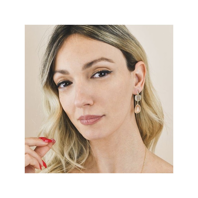 Orecchini al lobo, in bronzo placcato oro giallo con cristalli pendenti bianchi e pesca con zirconi sul contatore. orecchini realizzati in Italia, il materiale è il bronzo, la dimensione del cristallo è di 1,3cm, con chiusura a farfalla. I gioielli Boccadamo grazie al suo design raffinato ed elegante sono creazioni dall'indiscutibile fascino italiano. Collezione CRISTETTA.Questo articolo verrà spedito con scatola originale Boccadamo.