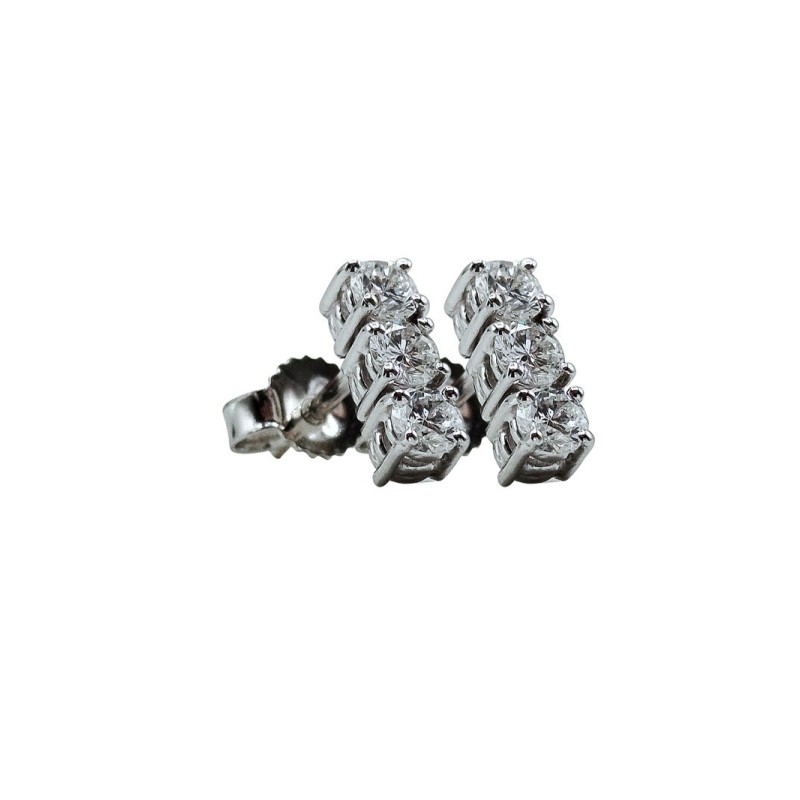 Orecchini trilogy in oro 18kt con diamanti naturali taglio brillante G VS 0,60 ct. Realizzati con materiali di alta qualità e finiture impeccabili per un effetto luminoso e ricercato. L'articolo verrà spedito in confezione originale.