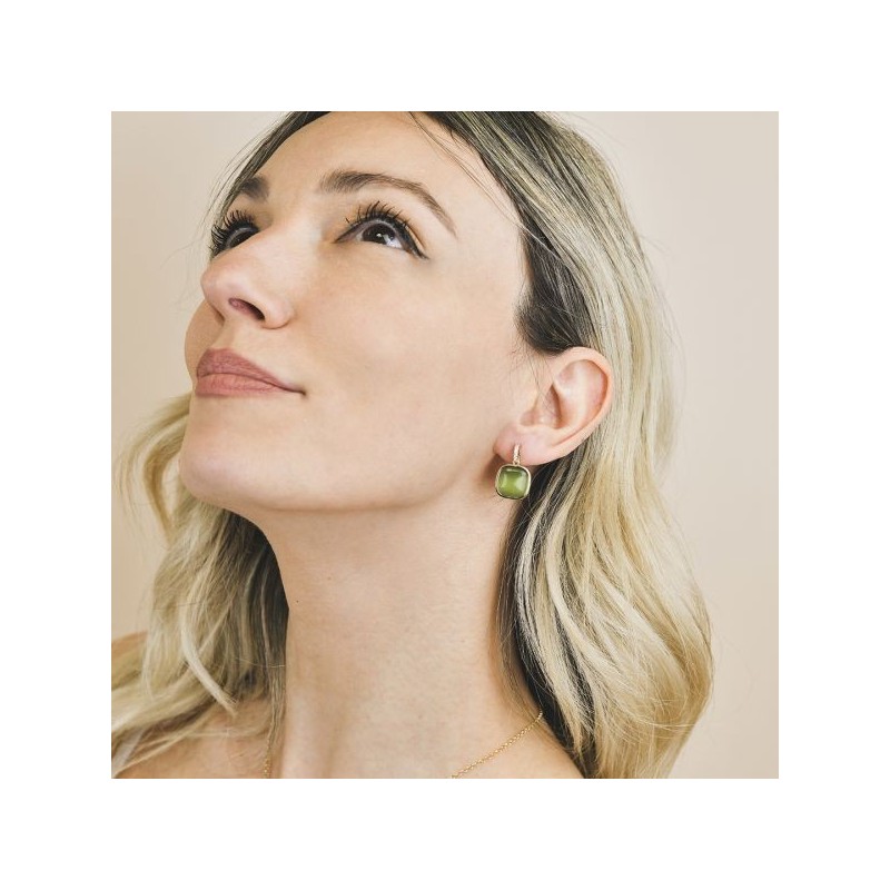 recchini al lobo, in bronzo placcato oro giallo con pendente cristallo verde e maglia di zirconi. orecchini realizzati in Italia, il materiale è il bronzo, la dimensione del cristallo è di 1,3cm, con chiusura a farfalla. I gioielli Boccadamo grazie al suo design raffinato ed elegante sono creazioni dall'indiscutibile fascino italiano. Collezione CRISTETTA.Questo articolo verrà spedito con scatola originale Boccadamo.