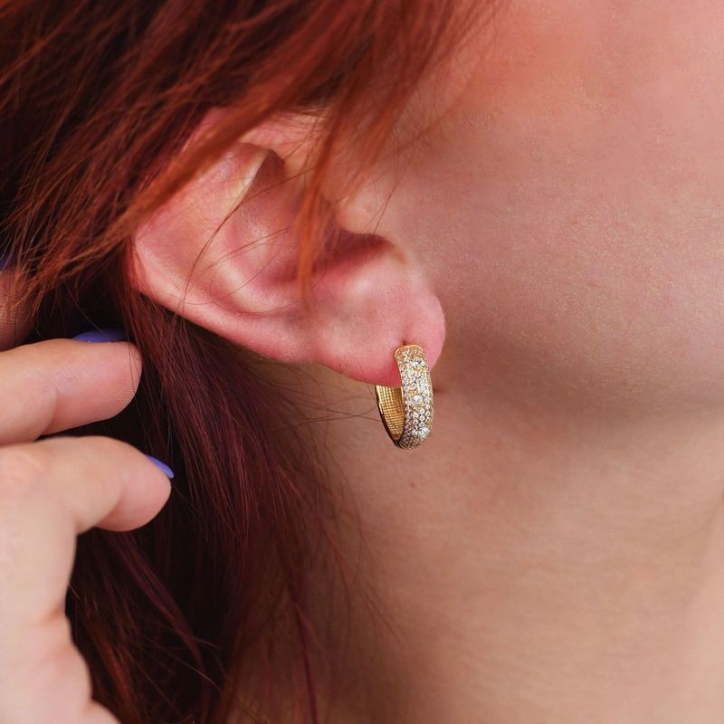 Orecchini in argento placcato oro rosa a cerchio di pavè di zirconi e zirconi incastonati. L'articolo verrà spedito in confezione originale BOCCADAMO.