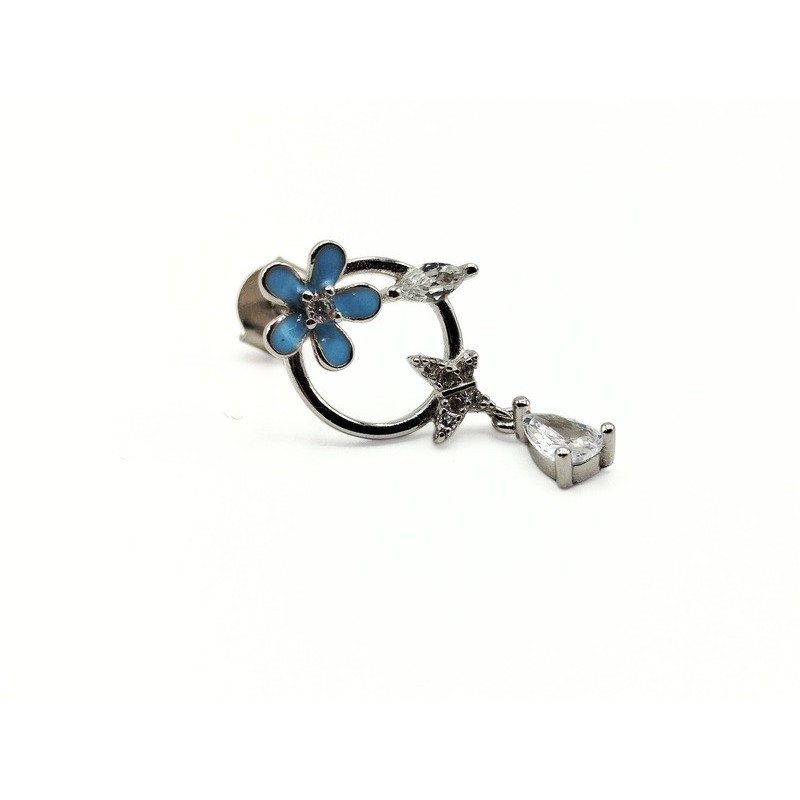 Orecchini in argento 925 e zirconi naturali bianchi con fiore e farfalla. L'articolo verrà spedito in confezione originale IL GIOIELLO DI PANI.