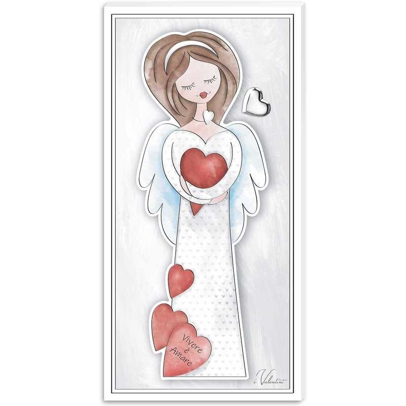 Gli angeli dei pensieri della collezione I VALENTINI di Valenti &Co. - Pannello in legno con decorazioni di glitter e dettagli in PVD - Dimensione 13x26 - Questo articolo verrà spedito con Scatola Originale Valenti Argenti