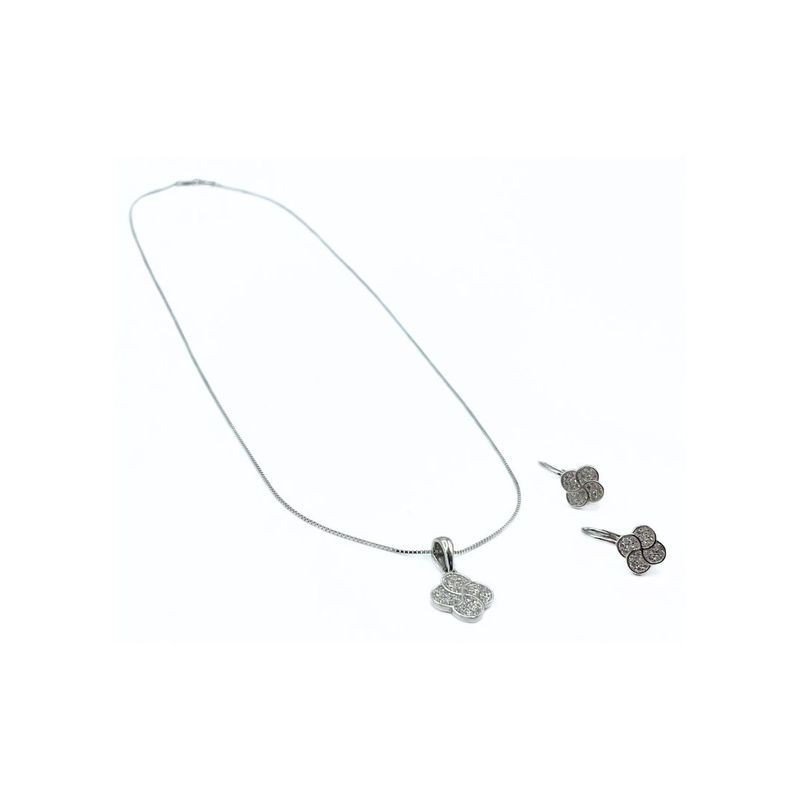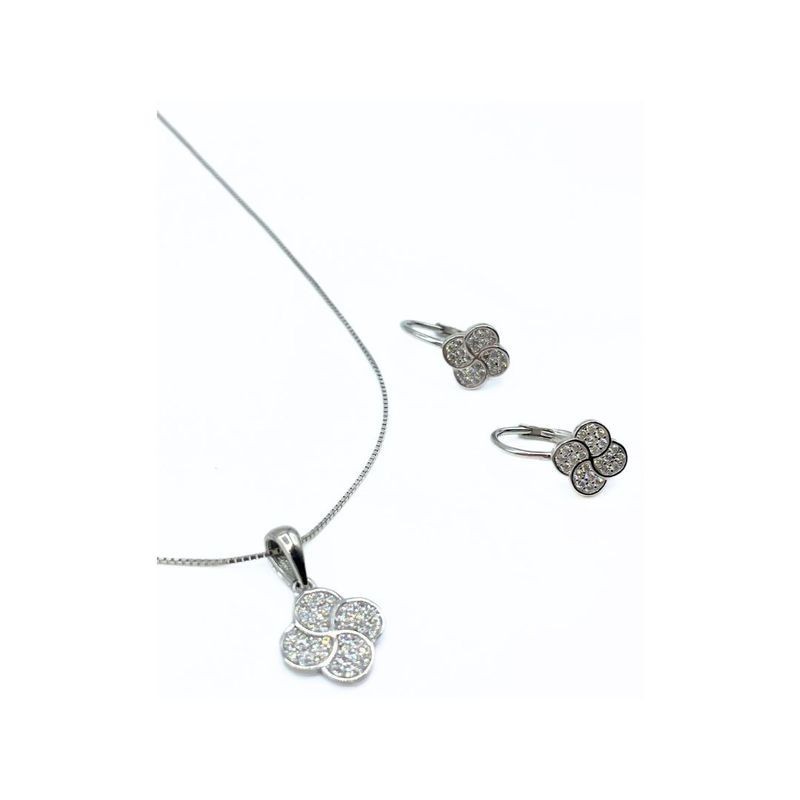Parure quadrifoglio con zirconi in argento. Fa parte della linea KAMALI.Questo articolo verrà spedito con scatola X LEI.