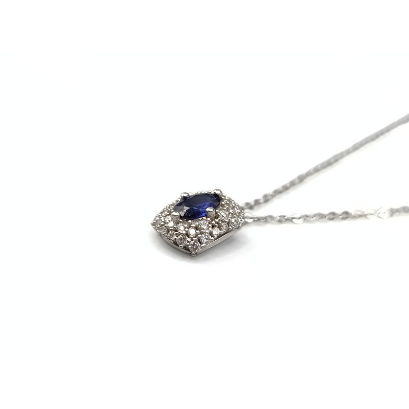 Pendente con zaffiro 0,61ct in oro bianco 18kt contornato da brillanti da 0,25ct .La collana con diamanti è un gioiello raffinato e prezioso ma anche versatile, creato affinché qualsiasi donna possa indossarlo con disinvoltura. L'articolo verrà spedito in confezione originale IL GIOIELLO DI PANI.