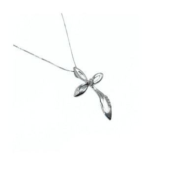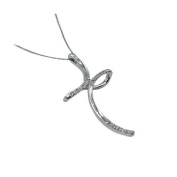 Pendente 4 Griffe in Oro Bianco 750/°°° e Brillanti ct.0,20 - Colore F , Purezza VVS . Compreso di Veneziana in oro Bianco 750/°°° da 45cm.