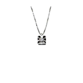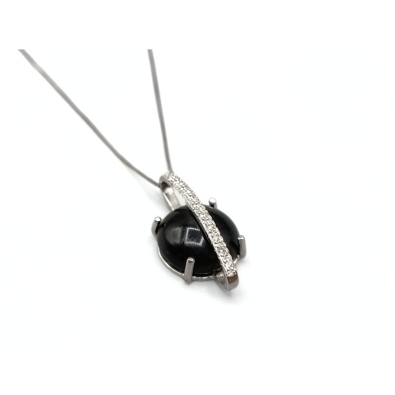 Pendente con pietra onice in oro bianco 18kt con brillanti da 0,08ct .La collana con diamanti è un gioiello raffinato e prezioso ma anche versatile, creato affinché qualsiasi donna possa indossarlo con disinvoltura. L'articolo verrà spedito in confezione originale IL GIOIELLO DI PANI.