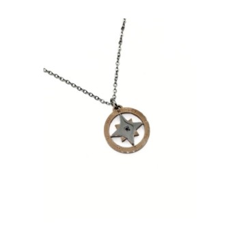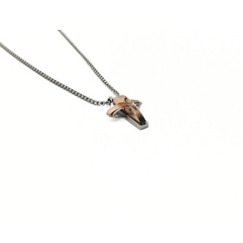pendente uomo in acciaio 316l con piastra bicolor. catena rolò in acciaio