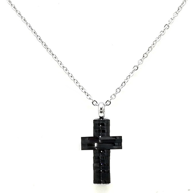 pendente uomo in acciaio 316l con croce total black . catena rolò in acciaio
