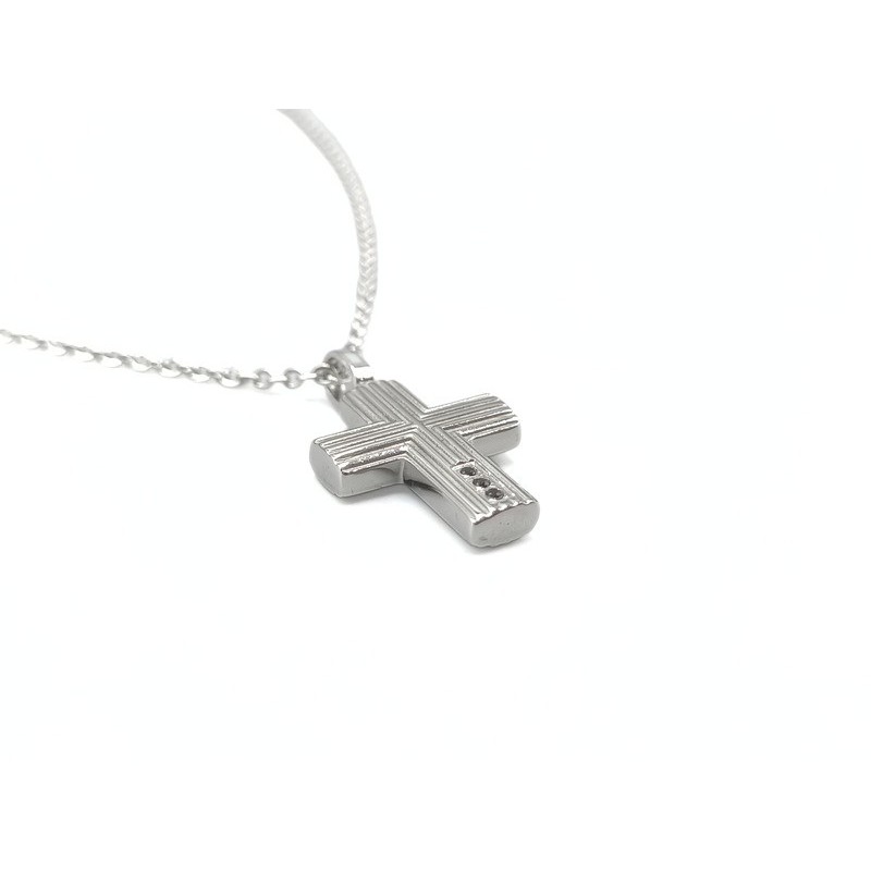 Pendente croce in acciaio 316l e zirconi naturali. L'articolo verrà spedito in confezione originale IL GIOIELLO DI PANI.