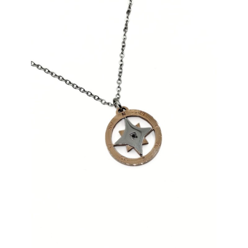 Pendente rosa dei venti in acciaio bicolor. L'articolo verrà spedito in confezione originale IL GIOIELLO DI PANI.