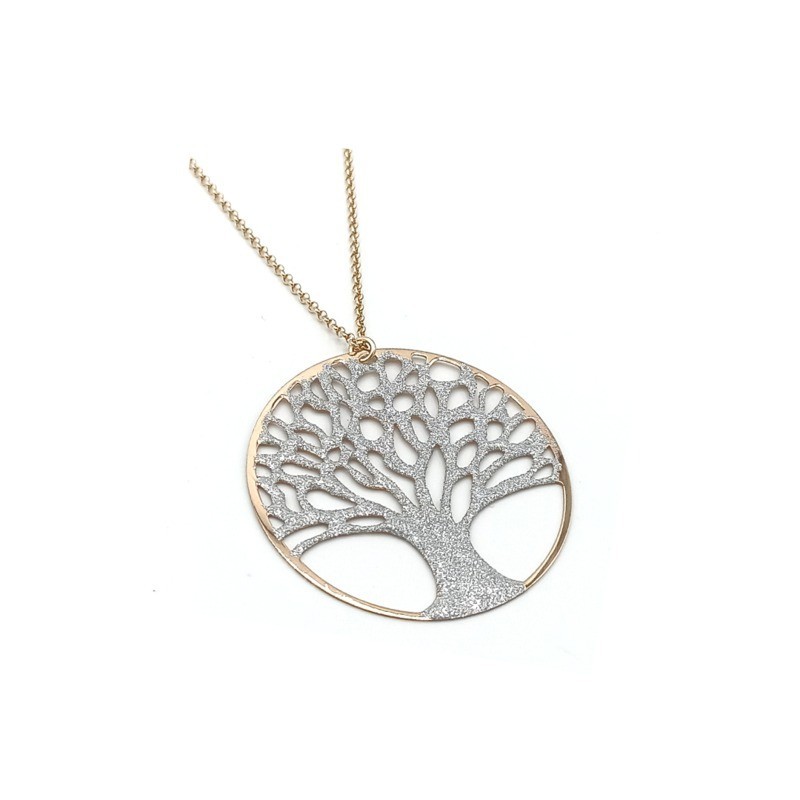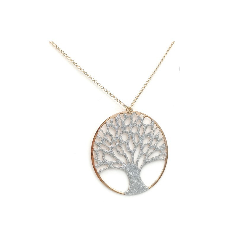 pendente albero della vita satinato, in argento 925% con perfilo rosato. lunghezza rolò: 45cm.nichel free